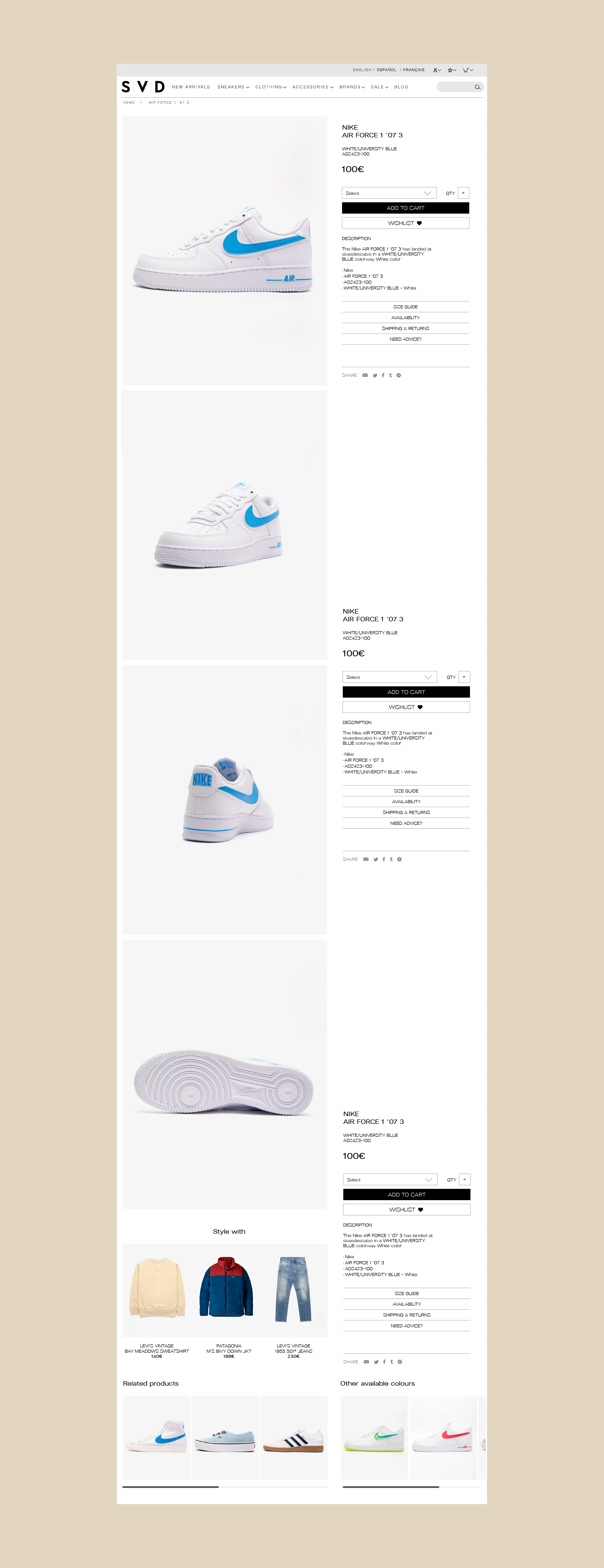 The new layout presents a cleaner structure, stronger visual storytelling, and a streamlined flow that highlights product details, sizing, and availability. By integrating recommendation modules directly into the page, the experience becomes richer and more dynamic, ultimately supporting both user satisfaction and higher conversion rates. The result is a modern, functional, and premium product page aligned with the brand’s aesthetic.